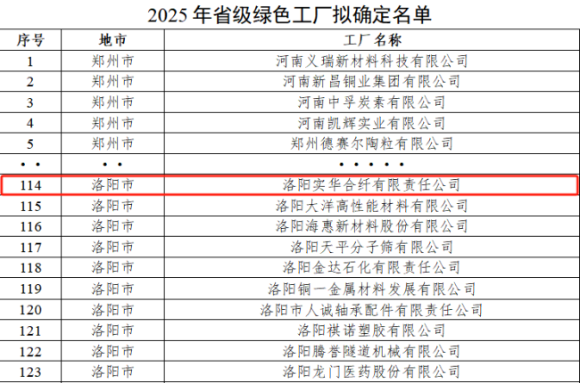 洛陽實(shí)華合纖有限責(zé)任公司榮獲2025年度河南省綠色工廠榮譽(yù)稱號