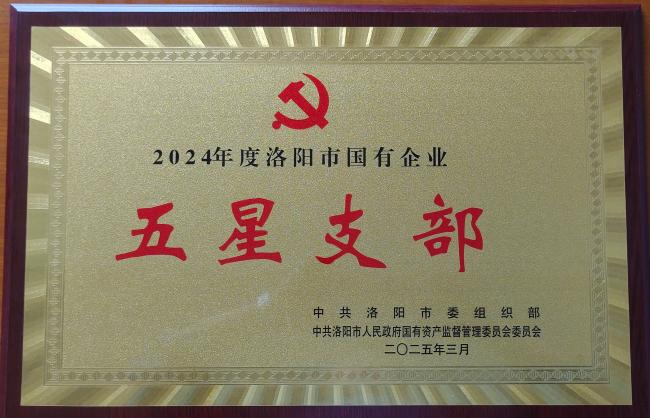 近日,合纖公司黨總支榮獲中共洛陽市委組織部、中共洛陽市人民政府國有資產監督管理委員會授予的2024年度洛陽市國有企業“五星支部”稱號。